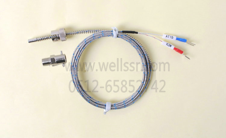 WT15系列高品質(zhì)熱電偶是由高品質(zhì)熱電偶線一頭直接焊成測溫點放入銅套管內(nèi)并加上壓簧及卡扣作為感溫探頭,一頭直接延長至所需長度作為引線