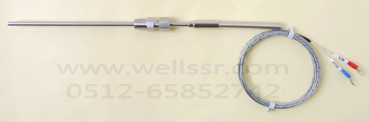 WT24系列高品質(zhì)熱電偶是由高品質(zhì)熱電偶線一頭直接焊成測溫點放入套接了臺階套管并加上彈簧和活動螺紋的304不銹鋼保護管內(nèi)作為探桿,一頭