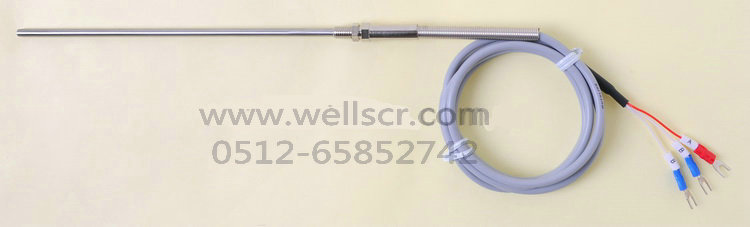 WR20系列 高品質(zhì)熱電阻是由含絕緣層和護套層的引線一頭焊接鉑電阻元件放入套接了銅螺紋并加上彈簧的304不銹鋼管內(nèi)作為探桿,一頭