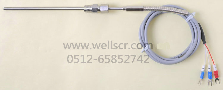 WR24系列高品質(zhì)熱電阻是由含絕緣層和護(hù)套層的引線一頭焊接鉑電阻元件放入套接了臺(tái)階套管并加上彈簧和活動(dòng)螺紋的304不銹鋼管內(nèi)作為探桿,一頭延長(zhǎng)至所需長(zhǎng)度作為引線而組成的活動(dòng)螺紋桿式高品質(zhì)熱電阻。高品質(zhì)熱電阻具有低溫精度高,但機(jī)械強(qiáng)度低的特點(diǎn)。WR24系列一般用于測(cè)量-200~+500℃氣體或液體的溫度。