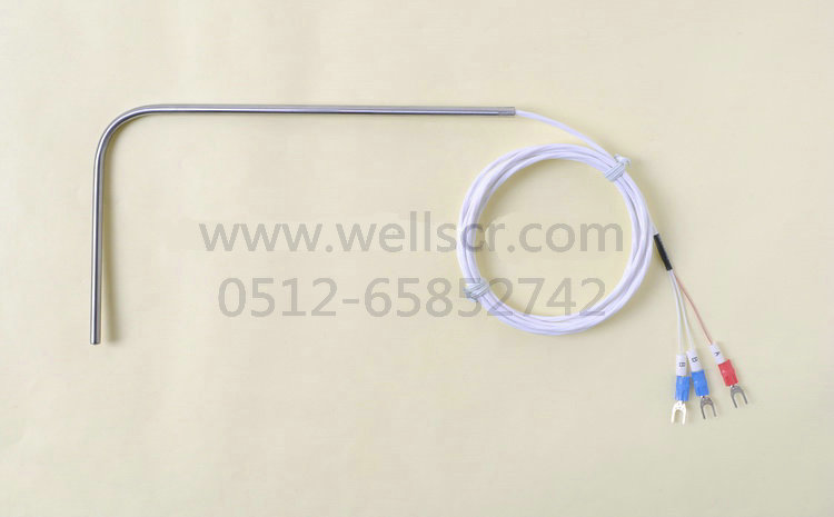 WR26系列高品質(zhì)熱電阻是由含絕緣層和護(hù)套層的引線一頭焊接鉑電阻元件放入套接了臺階套管并加上彈簧的304不銹鋼管內(nèi)作為探桿,一頭