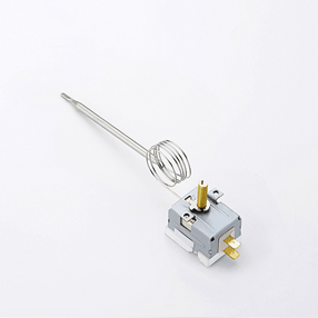 RST - Series大電流溫控 工作方法 此溫控器是液膨脹式溫控器,具有維持設定溫度的功能。它是通過測機器內(nèi)部或外部的溫度來完成的。液體膨脹式溫控器主要由感溫部、毛細管、隔板及煤液組成,當感溫部感應熱能時,煤液將膨脹,隔板的間距也因此變寬,同時此推力帶動開關進行通斷動作。達到設定溫度時,在復位裝置的作用下,它會在一定溫度范圍內(nèi)自動重復上升或下降的動作。 適用產(chǎn)品 - 適用于需要溫度調(diào)節(jié)的所有冷熱機器類,廣泛使用在電熱水器,商用冰箱,烤爐,鍋爐,自動售貨機,各種廚房設備等