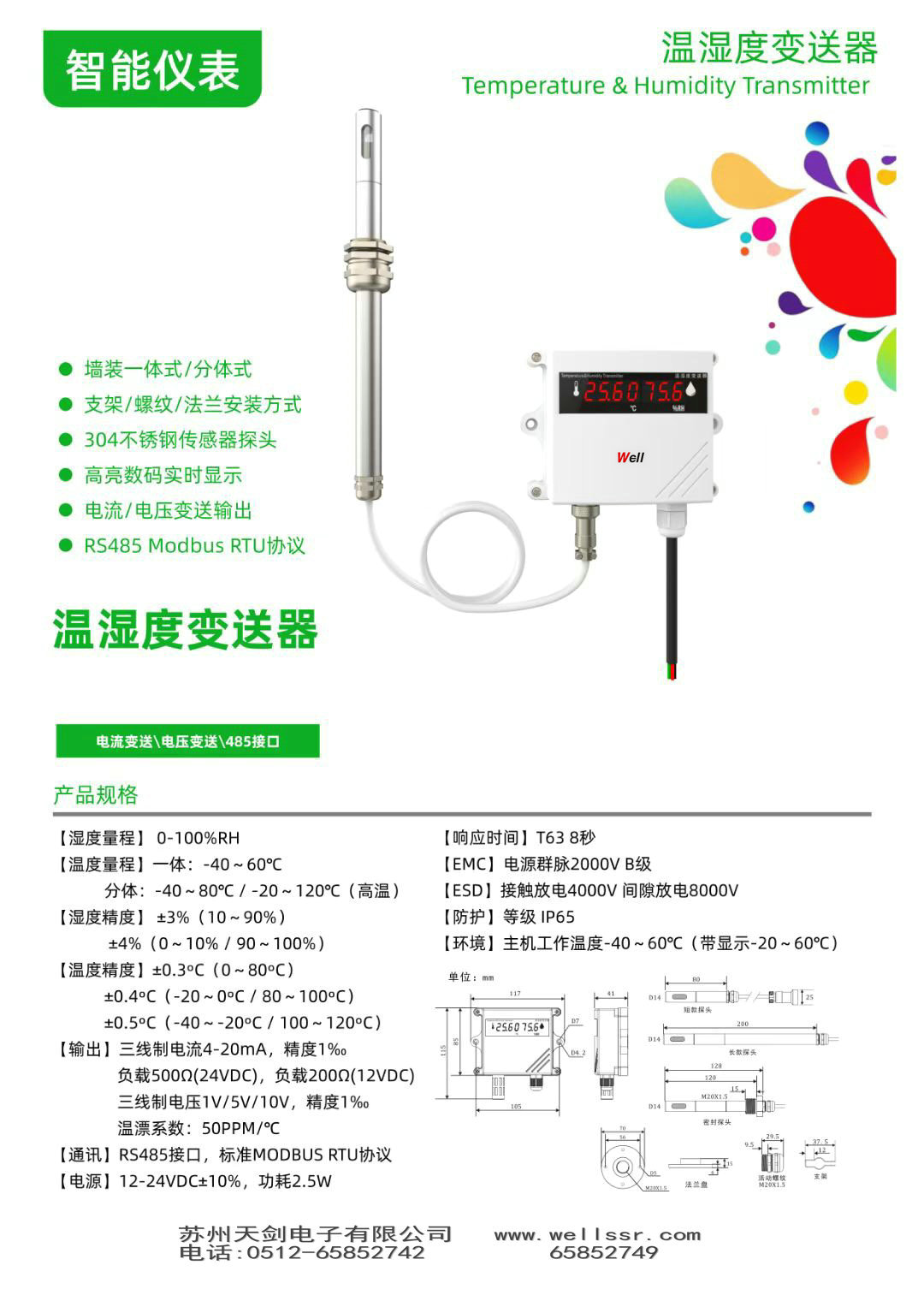 THX200是一款在環(huán)境空氣測量中應(yīng)用較為廣泛先進的溫濕度變送器。依托其優(yōu)秀的產(chǎn)品設(shè)計,傳感器探頭可抵抗結(jié)露,在惡劣環(huán)境中表現(xiàn)依然優(yōu)秀。非常適用于環(huán)濕設(shè)備、環(huán)保設(shè)備、除濕和干燥工藝過程應(yīng)用。傳感器探頭可工作在最高溫度80℃(176F),最低-40℃(-40F)的環(huán)境中。 傳感器有多種探頭類型可供選擇,有支架式、螺紋式、法蘭式和密封型。