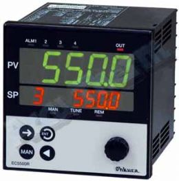EC5500R系列控制器,是日本大倉(cāng)(Ohkura)公司生產(chǎn)的一款面板尺寸為96×96mm的多功能控制器。此系列控制采用高20mm大尺寸4位LED顯示,輸入類(lèi)型可自由切換,顯示精度為0.25級(jí),標(biāo)配2組報(bào)警輸出,可選RS-232或RS-485通訊功能,還可以根據(jù)需要與EC5900R程序控制器組合形成一個(gè)主副控制系統(tǒng)。EC5500R系列控制器具有功能強(qiáng)大、控制精準(zhǔn)、操作簡(jiǎn)便、適用性強(qiáng)等特點(diǎn),目前廣泛應(yīng)用于半導(dǎo)體、熱處理、石油、化工、水處理、環(huán)保等產(chǎn)業(yè)。